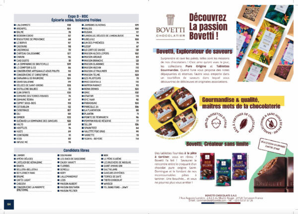 EPICURES 2026 Troisième de couverture dans le catalogue visiteurs