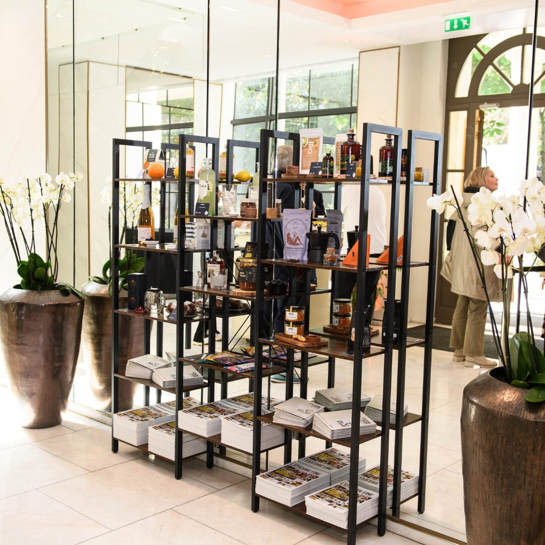 Un produit exposé sur l’étagère à l’entrée du Pavillon Gabriel